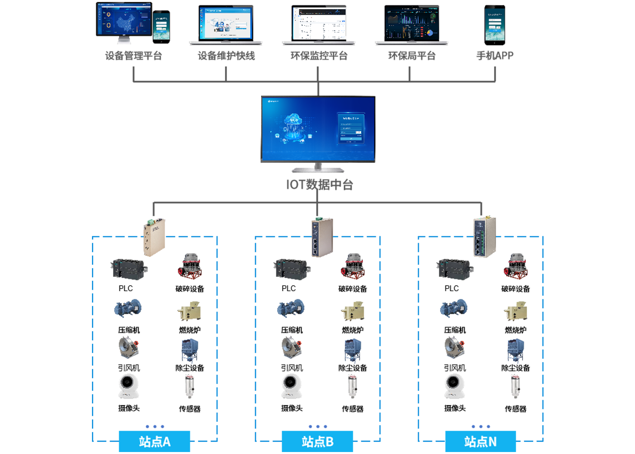 在固废垃圾处理场的各个关键位置(如垃圾存储区、处理设备旁等)安装传感器和监测设备,顺利获得yth游艇会yth206的工业智能网关采集垃圾处理设备(如焚烧炉、破碎机等)的运行数据(如运行状态、温度、压力等)、垃圾存量数据以及环境监测数据(如空气质量、噪声等)。将采集到的数据传输至固废垃圾处理远程监控平台,平台对数据进行实时分析和展示。当垃圾存量达到预警值或设备出现异常时及时发出预警,支持远程运维和调度操作,同时对垃圾处理效果进行评估。