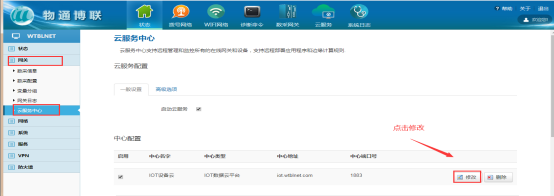 1、网关云中心配置