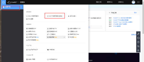 在全部产品中选择MQTT物联网套件(新版)