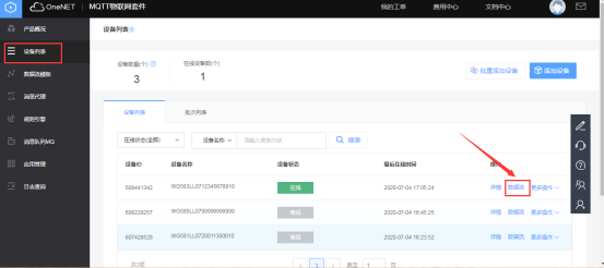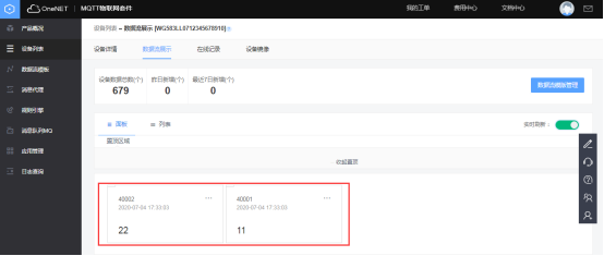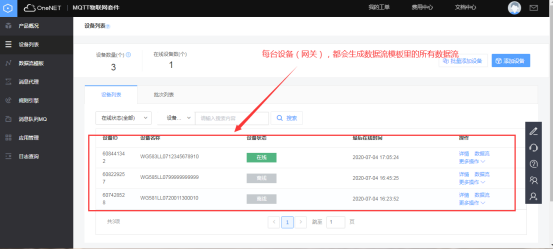 进入one net平台查看网关对应的数据流