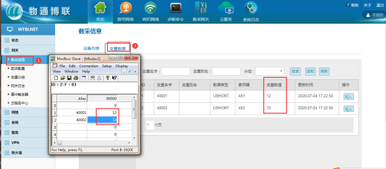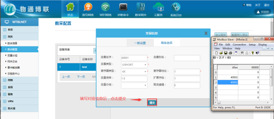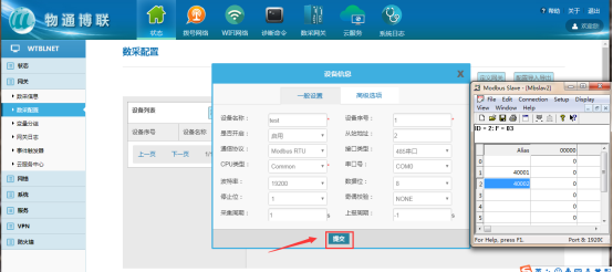 在网关中添加对应要采集的设备(plc,仪器仪表等,文档中用modbus slave软件模拟采集数据,模拟软件详细操作跳过,如果疑问可咨询)