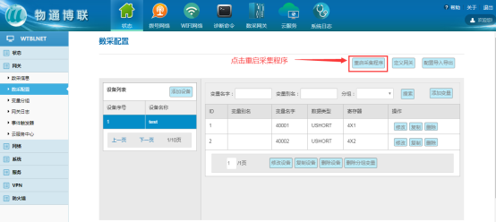 设备和变量添加完毕后,要重启采集程序,使配置生效