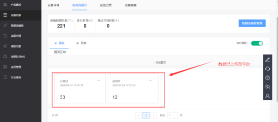 3、数据在平台上展示