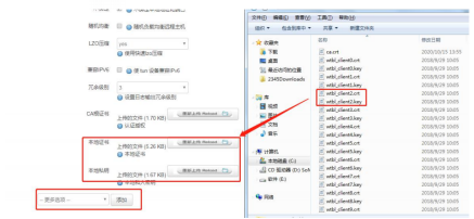 添加上传另一份本地证书、本地密钥(不能使用电脑客户端的证书跟密钥)