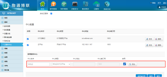 (1)IOT数据云平台:为我司公网地址,数据可上传至我司IOT平台进行数据监控以及远程维护、远程部署配置。