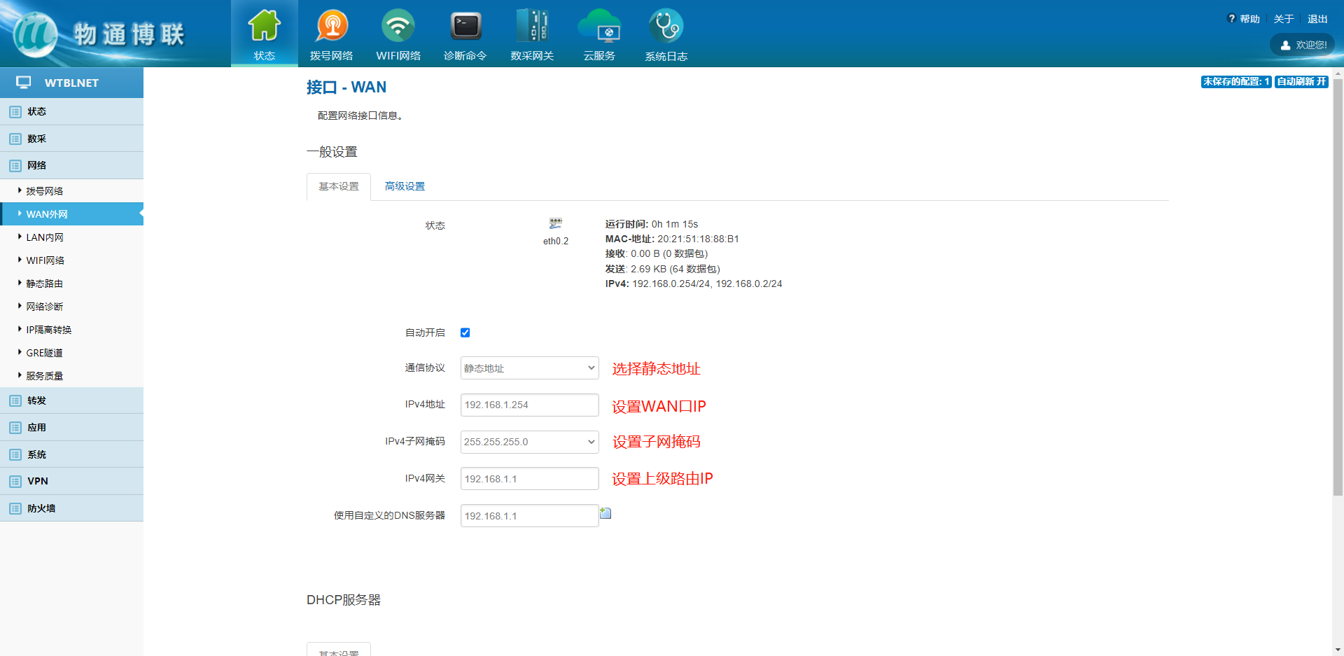 1、设置静态WAN