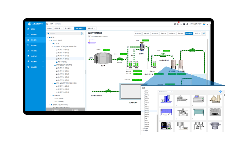 顺利获得将网关的数据接入到yth游艇会yth206工业数据云平台,可以实现对PLC的数据进行远程监控,顺利获得平台的组态功能可以自由绘制组态监控画面,实现电脑端和手机端的设备运行状态和工艺流程的可视化组态监控。